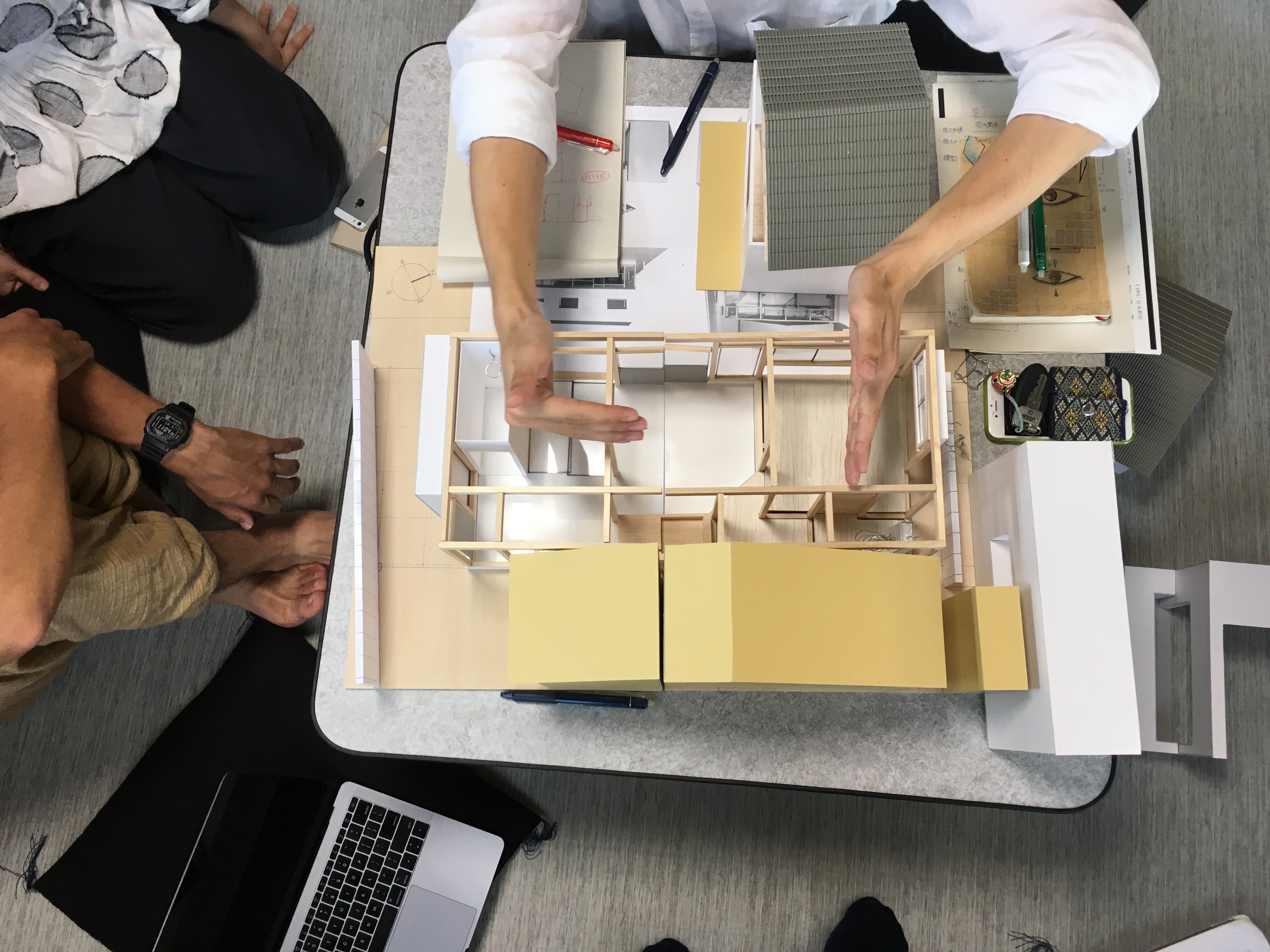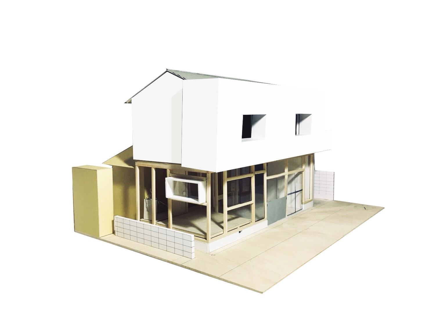 幹線道路が走るロードサイドに建つ、店舗兼住宅の一部改修の計画です。三河地方に地域とアート(創作)をつなぐプラットフォームとして、1階をアートセンターに、2階を住居として計画しています。前身となる山口県のMAC(Maemachi Art Center)に倣った、街に馴染む創造の場を目指します。
